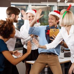 2. colleagues-celebrating-christmas-party-office-smiling-giving-presents